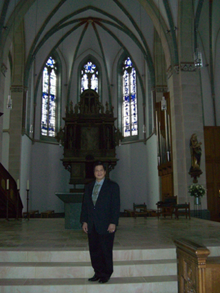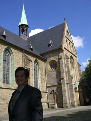 Posing beside a very old Saint Vincenz Church (built inthe year 870 A.D.) of Sauerland, Germany. |