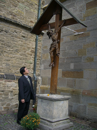 Looking at the very rare, old Crucifix of Saint Vincenz Church, Sauerland, Germany. |