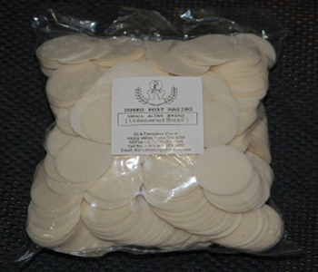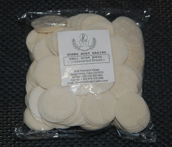 Excellent quality Communion bread. Doneo Host Making Company offers high quality altar bread, they are baked of only pure wheat flour and water. It is made strictly without additives, sealed after baking and are untouched by human hands.