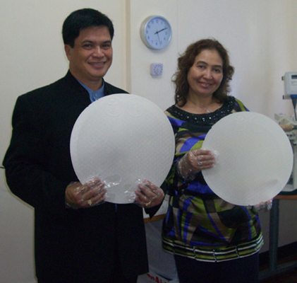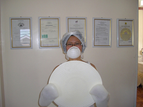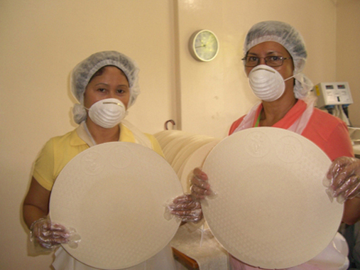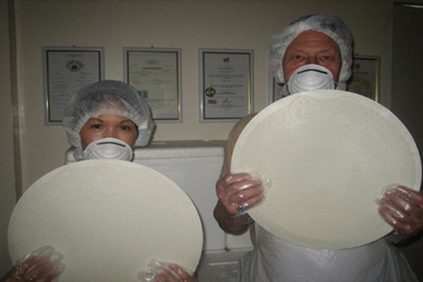 |  | Baker Cedee B. Neo holding a newly baked 376mm Host Cake. |  | Q.A./ Sorter Jay Marie Schibler of Frieburg, Switzerland. |