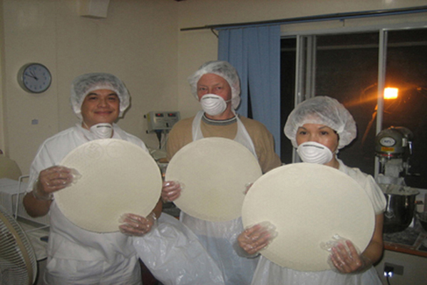|  | Cutter/ Q.A. Engr. Mike De la Cruz of Queens, New York. |  | with Baker Eric Stucki and Master Chef Aleth Stucki of