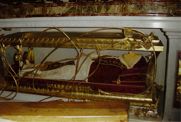 Picture personally taken inside St. Peter's Basilica dated August 2006. The Incorrupted body of Blessed Pope John XXIII. |