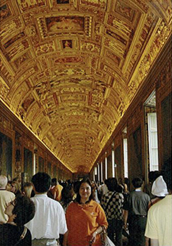 Inside the Vatican Museum where collections of precious masterpieces are viewed inside the 15 Exhibition Halls. |