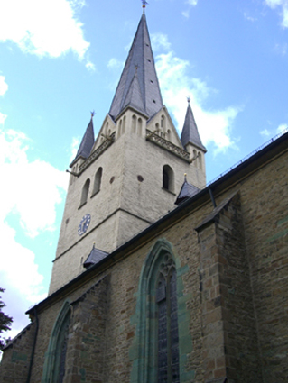 Tower built in 870 A.D. is still standing on this very old Saint Vincenz Church of Menden, Germany. |